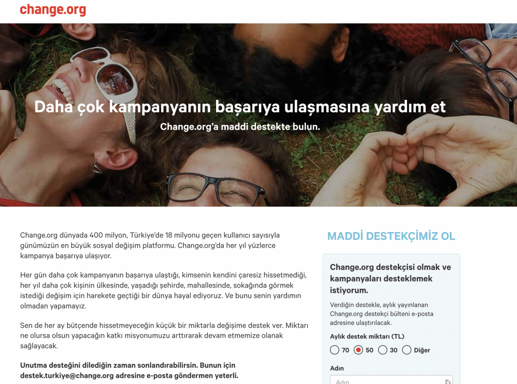 Greenpeace ve change.org’un kaynak geliştirme sitelerinde de destek verme seçeneği dışında herhangi bir tıklanabilir alan bulunmuyor.